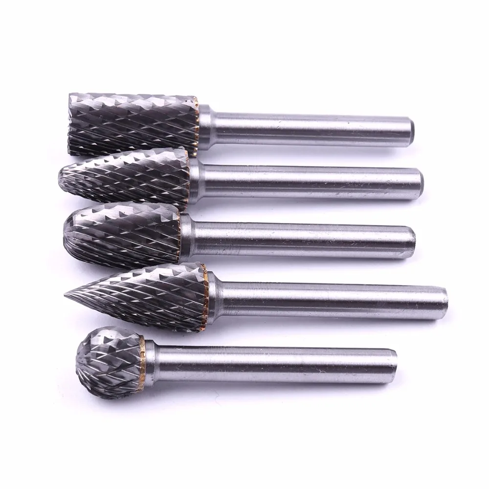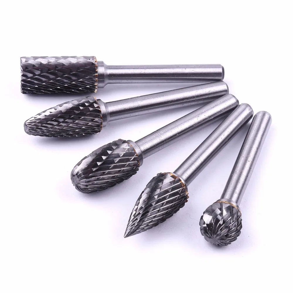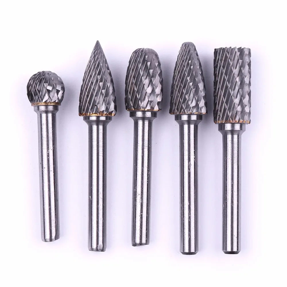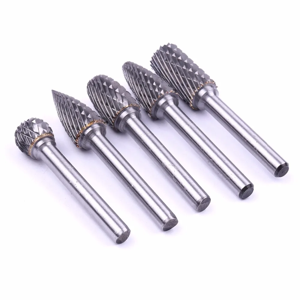 Promo 5PCS/set Assorted 12mm Head Tungsten Carbide Rotary Point Burr Die Grinder Bit 6mm Shank Milling Cu